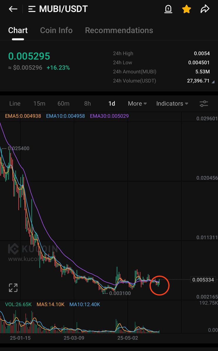 $MUBI breaks the downtrend ✅ Listed on more than 25 exchanges😉 Volume 3m$ mcap 4m$ 🧨 No selling pressure and 95% of supply in circulation 🔥 Chart is great, ready for a bull run 📈 20% pump is just the beginning #100x journey begins 🚀🚀 Don't miss the train 🚄 #ath #multibit