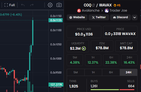 ◢ @CoqInuAvax ● $COQ Price: $0.00000013 FDV: $90M Contract: 0x420FcA0121DC28039145009570975747295f2329