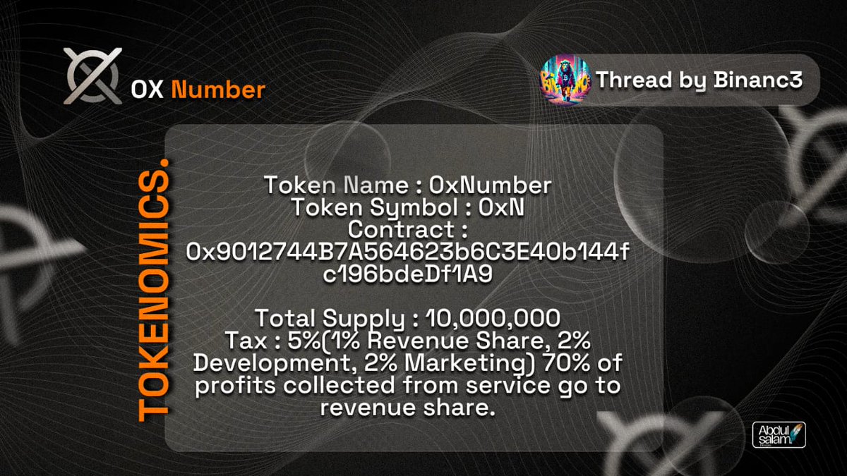 🧮 || TOKENOMICS Name: 0xNumber Symbol: $0xN Total supply: 10M CA: 0x9012744b7a564623b6c3e40b144fc196bdedf1a9 (Check the bullish Chart below ↓)