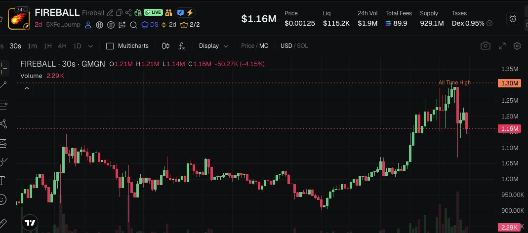 🔥 Jumped on $FIREBALL early at about $1 MCAP, secured our entry well before it surged past $1.6M+ 🚀💰 #Solana #Trending #NFTs #SOA #memecoin #Pump #FIREBALL 5XFeFezwgZvSdG2N69FPBuz98uFpfBCkFcXQXSiGpump