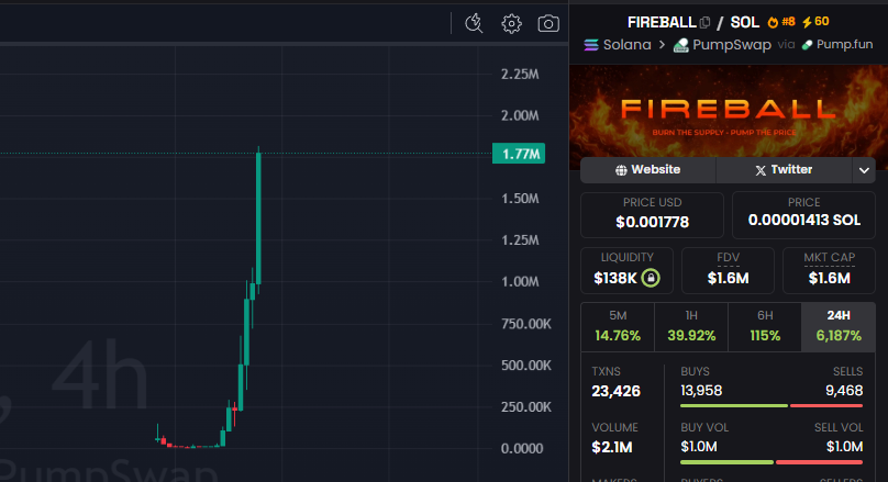 Shared $Fireball in my tg at 40k. New ATH 2m+ now. 40x+ . Follow my tg for more alpha and early entries. Link in my bio. 10m next leg ? 5XFeFezwgZvSdG2N69FPBuz98uFpfBCkFcXQXSiGpump