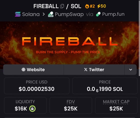 💖GM 💖 $FIREBALL | 1.6M rn on #SOL After a night we got 22X already. 100K mc -> 2.2M $FIREBALL is pumping because: It has extremely strong automatic burn, has a narrative mechanism, making it the hottest memecoin on Solana 5XFeFezwgZvSdG2N69FPBuz98uFpfBCkFcXQXSiGpump