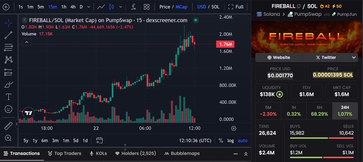 $FIREBALL MC:1.5M CA:5XFeFezwgZvSdG2N69FPBuz98uFpfBCkFcXQXSiGpump OKX Wallet: GMGN: Token Narrative: An automated burning protocol designed specifically for the ecosystem. which extracts unclaimed transaction fees from the creator treasury every 60 seconds, converts them into SOL to repurchase tokens, and permanently burns them.