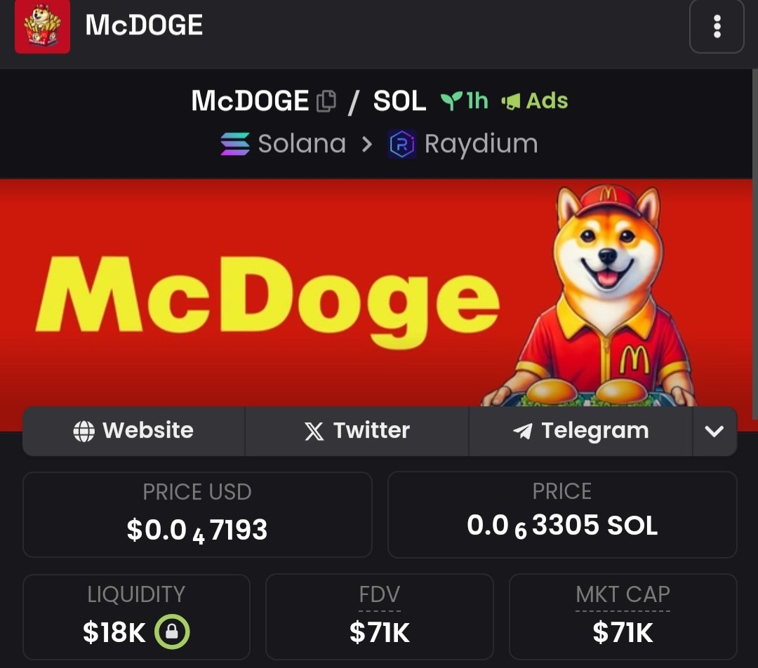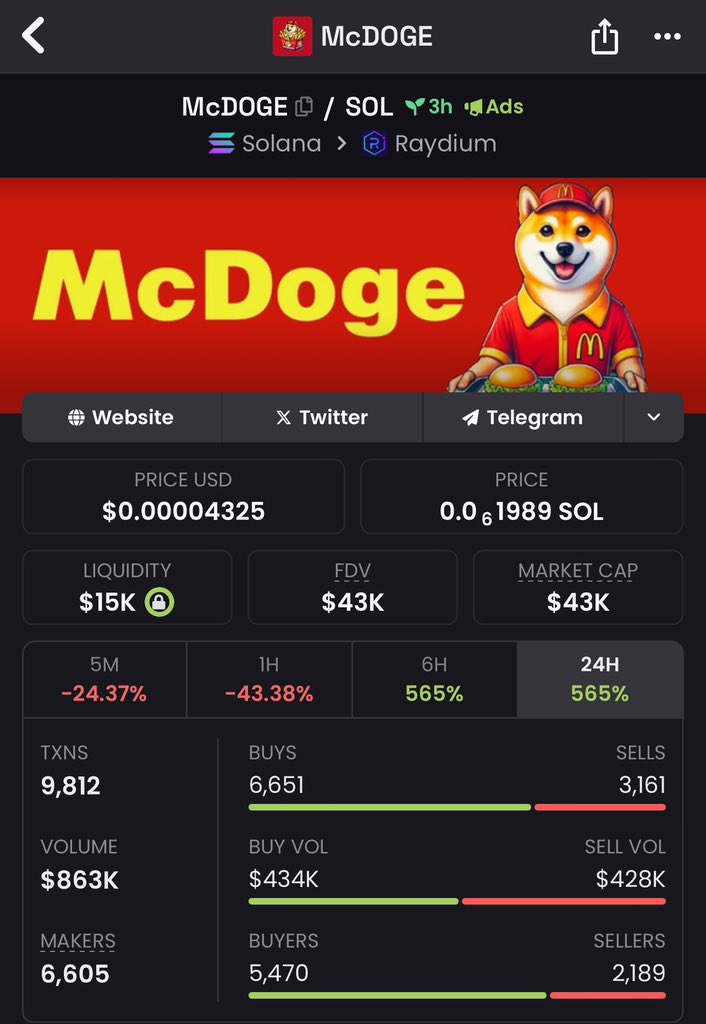 ๐ธMcDOGE(McDOGE) Spent $299 to update DEXScreener CA: 5wVu1d2Y2dF1SafM1KBfK1WKuWn12YGueK5wLyrN7FuG telegram: ๐๐ป๐็นๅปๆฅ็k็บฟ(click to view the k-line)