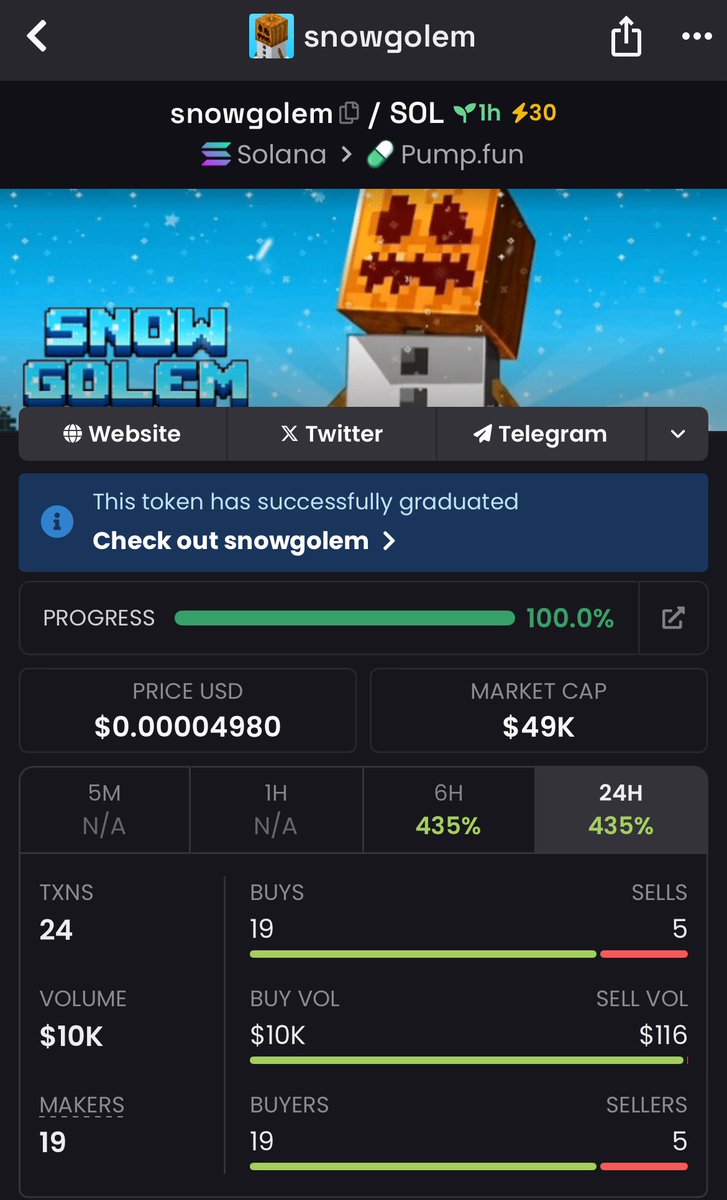 I introduced $snowgolem to my private Telegram group at a $49k market cap. ⛓️ #Solana Ca: 6LJvmN3Rh5oQwshSeoP2WjD6kK5wx9xXJT5h3qGxpump