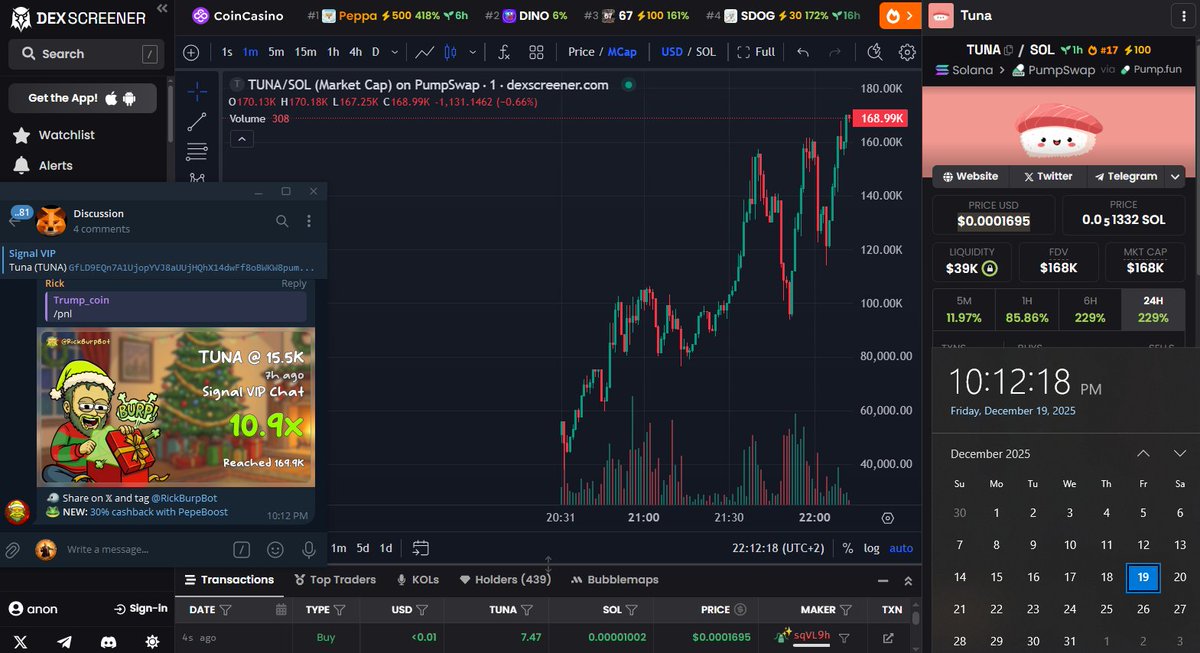 Bought some $TUNA ($230K) | A new launch pad on SOL! CA: GfLD9EQn7A1UjopYVJ8aUUjHQhX14dwFf8oBWKW8pump 📊